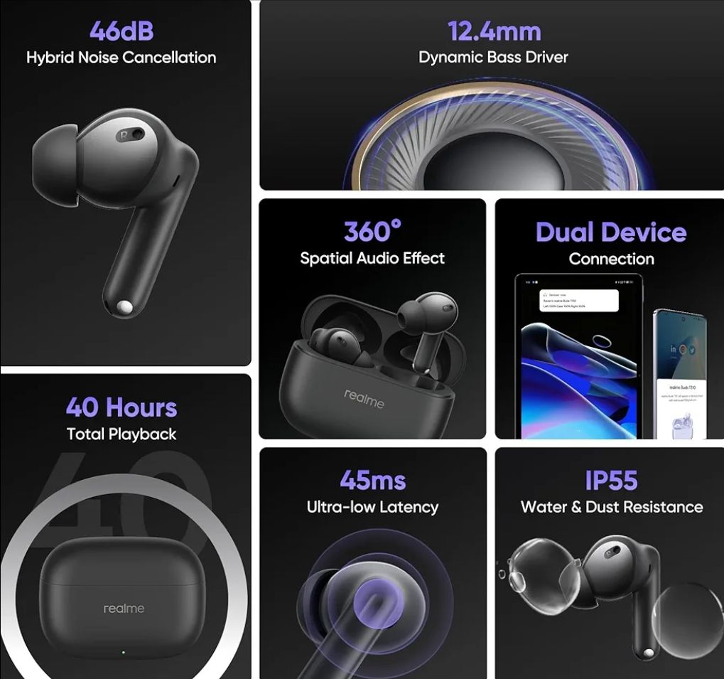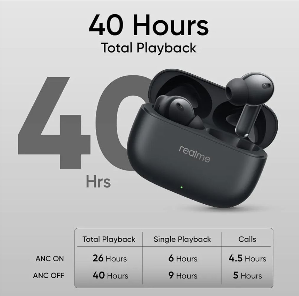 46dB Hybrid Noise Cancellation | 45ms Ultra Low Latency 12.4mm Dynamic Bass Driver 40 Hours Total Payback.